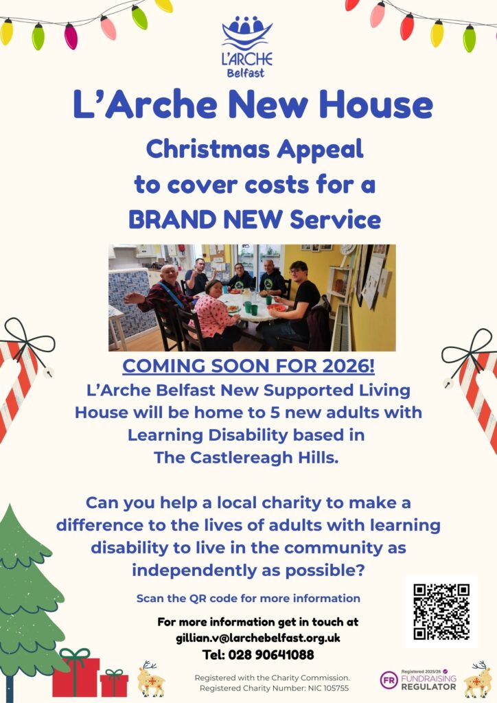 Please Help by choosing L’Arche as your local charity cause. You will be helping us to set up a new much needed supported living project for adults in the Belfast area with learning disability.